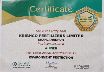 Kribhco Fertilizers Limited, Shahjahanpur (U.P.) has been declared Runner-up to the FAI Award for the Best Technical Innovation actually implemented in the field of fertilizer production technology for the year 2017-18 for 'Development of Indigenous Indian Manufacturer as an Import Substitute of Pressure Reducing and Desuperheating System (PRDS) Valve in Ammonia Plant'.
